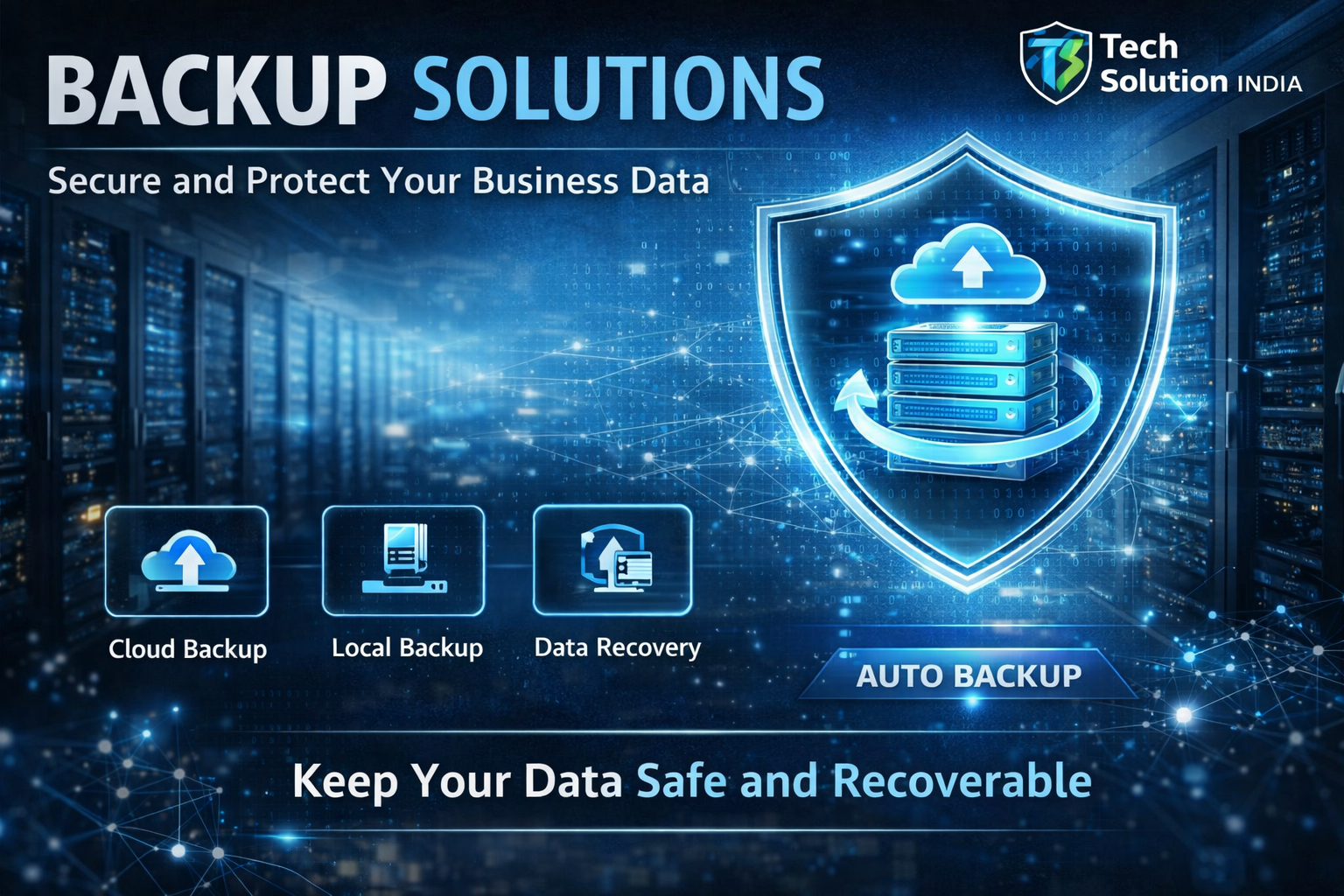 Tech Solution India provides reliable and secure Backup Solutions to protect your business data from loss, corruption, or cyber threats. We ensure that your critical data is always safe, easily accessible, and recoverable whenever needed.
