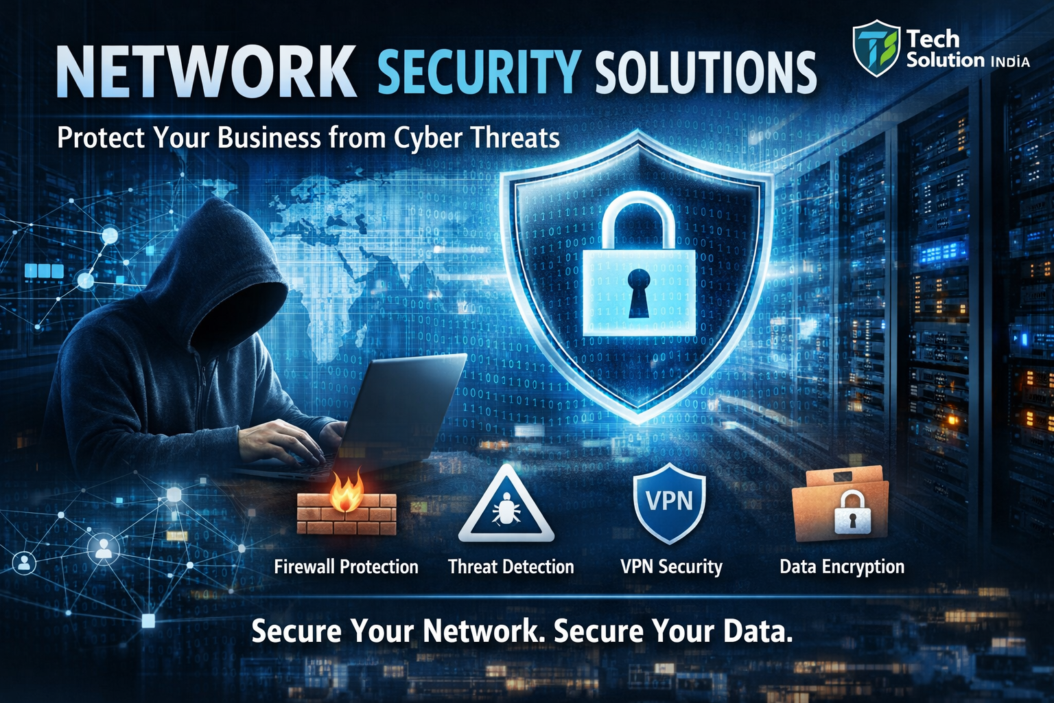 Tech Solution India provides advanced Network Security solutions to protect your business from cyber threats, unauthorized access, and data breaches. We ensure your IT infrastructure is secure, reliable, and always protected.